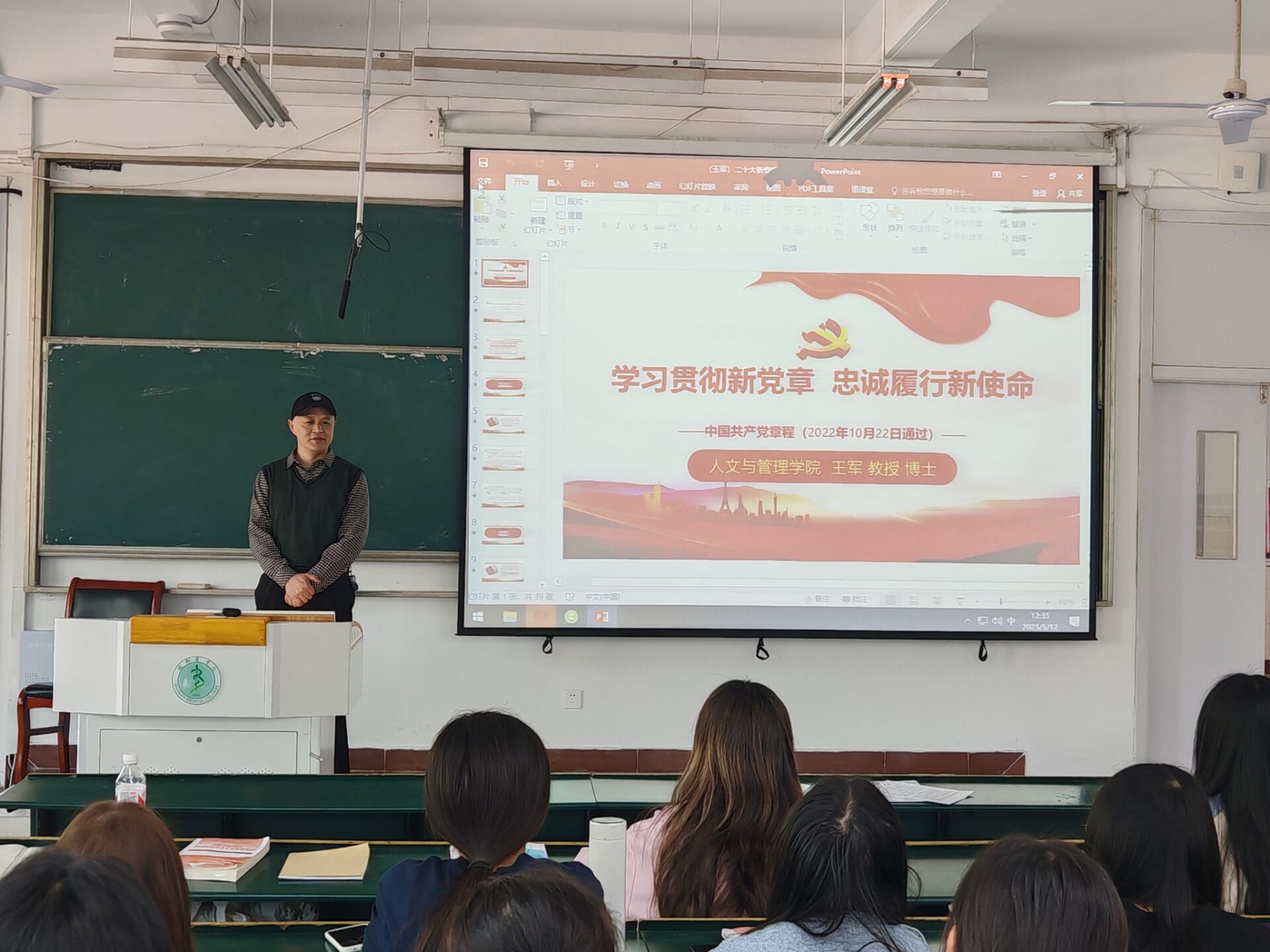 开班仪式上,学院党委书记王军以《学习贯彻新党章,忠诚履行新使命》为题,通过"党章沿革看初心""新思想引领新征程""青年党员的时代坐标"三个篇章,系统阐释了党章修订的重大意义。在讲述第一部党章时,王军特别强调:"党章的字里行间镌刻着共产党人的精神密码,希望同志们常读常新、知行合一。"学院党委副书记、院长王国平以《学习新思想,青春建新功》为主题讲党课,他通过"浙江下姜村""贵州天眼"等生动案例,寄语学员:“要像种子一样扎根祖国大地,在专业领域成长为可堪大用的'栋梁材'。”