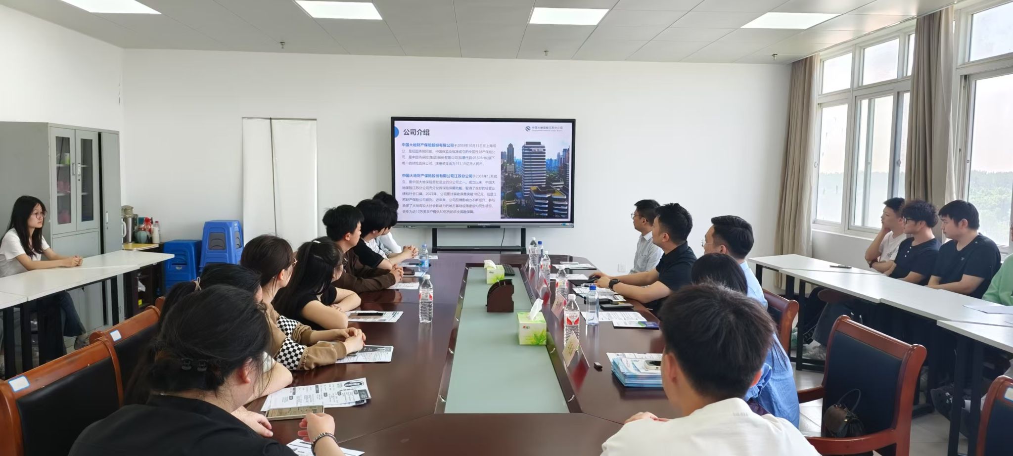 为加强与用人单位的联系,搭建毕业生与用人单位的交流平台,5月12日,365英国上市网站官网邀请中国大地财产保险股份有限公司安徽分公司和江苏分公司来院选用毕业生,学院党委副书记钱彬彬、保险学专业负责人俞彤以及相关辅导员参加会议。