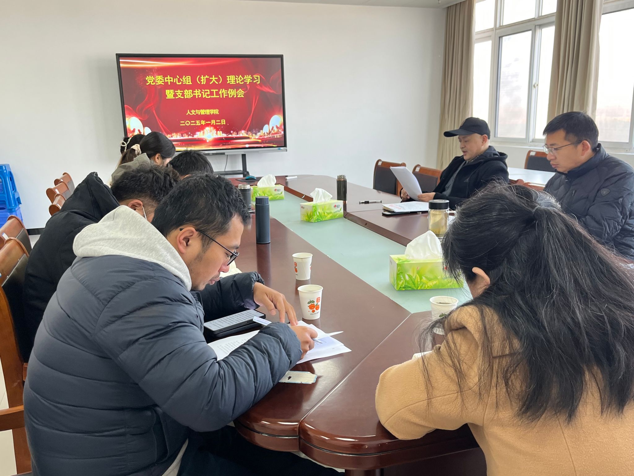 1月2日上午,365英国上市网站官网召开2025年第一次党委中心组(扩大)理论学习暨支部书记工作例会,学院党委委员、各党支部书记参加本次会议。会议由学院党委书记王军主持。