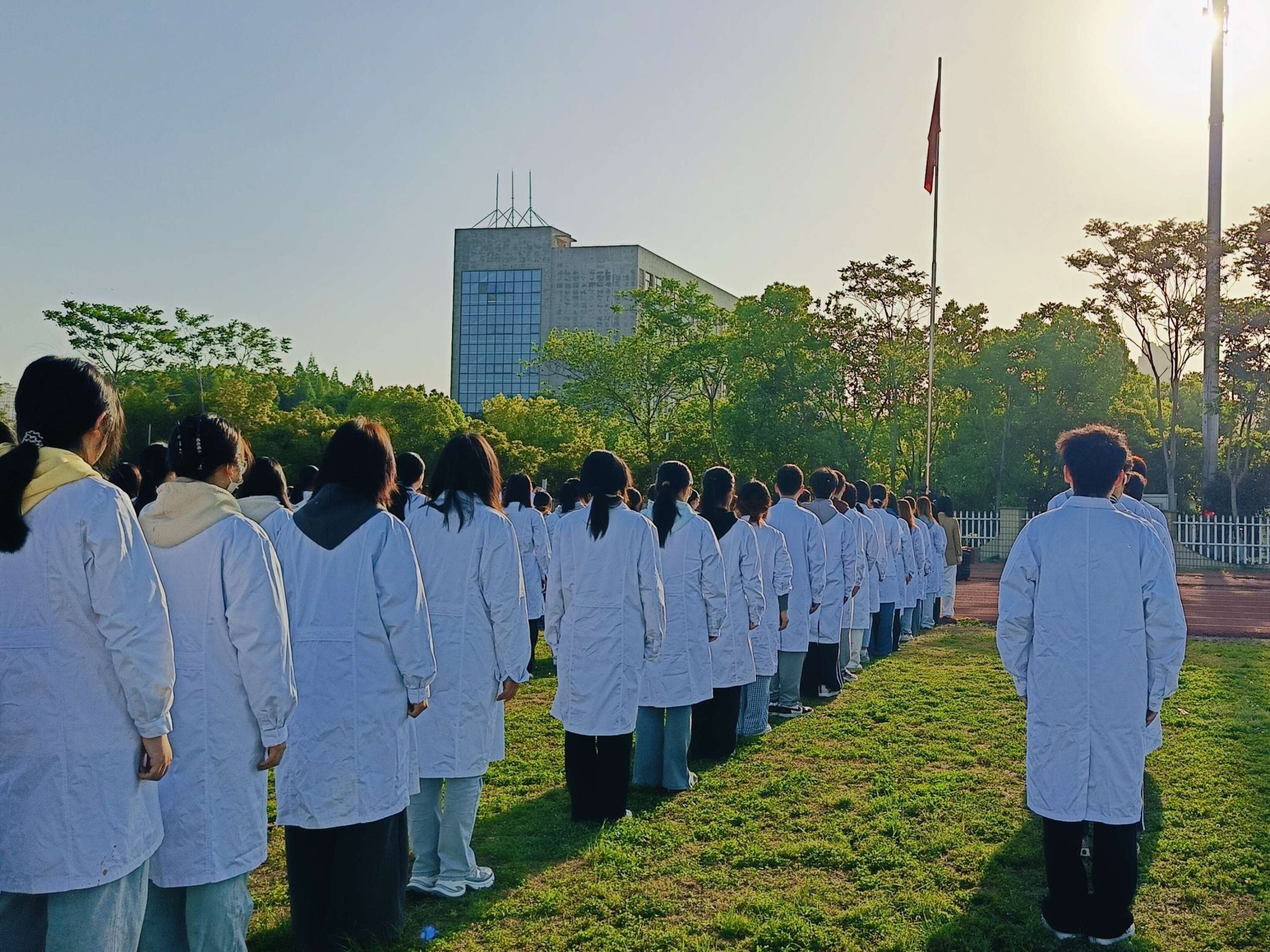 誓言铿锵铭壮志,校歌嘹亮聚同舟。全体师生高举右拳庄严宣誓,“尽己所能,服务社会”的誓言响彻云霄。随后,师生齐唱校歌《为人类托起明天的太阳》,以“精医、尚德、求实、自强”的校训激励实现个人理想,在激昂的旋律中凝聚起“强国有我”的奋进力量。
