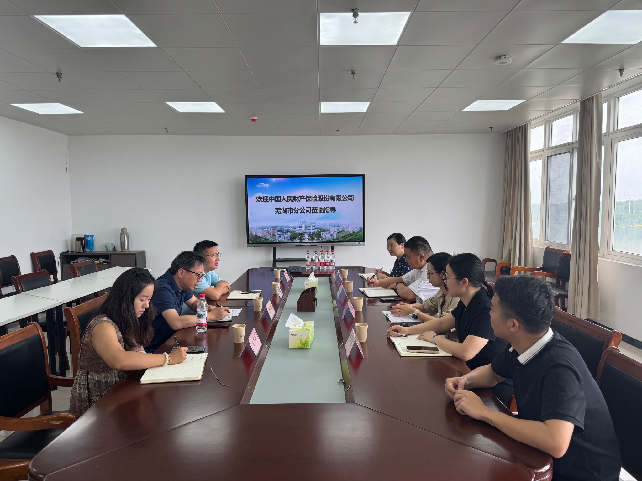 9月11日上午,中国人民财产保险有限公司芜湖市分公司副总经理曾志文率人力资源部和理赔部负责人来院交流考察,365英国上市网站官网党委副书记钱彬彬、医疗保险专业负责人俞彤和2026届毕业班辅导员訾梦婷出席会议。