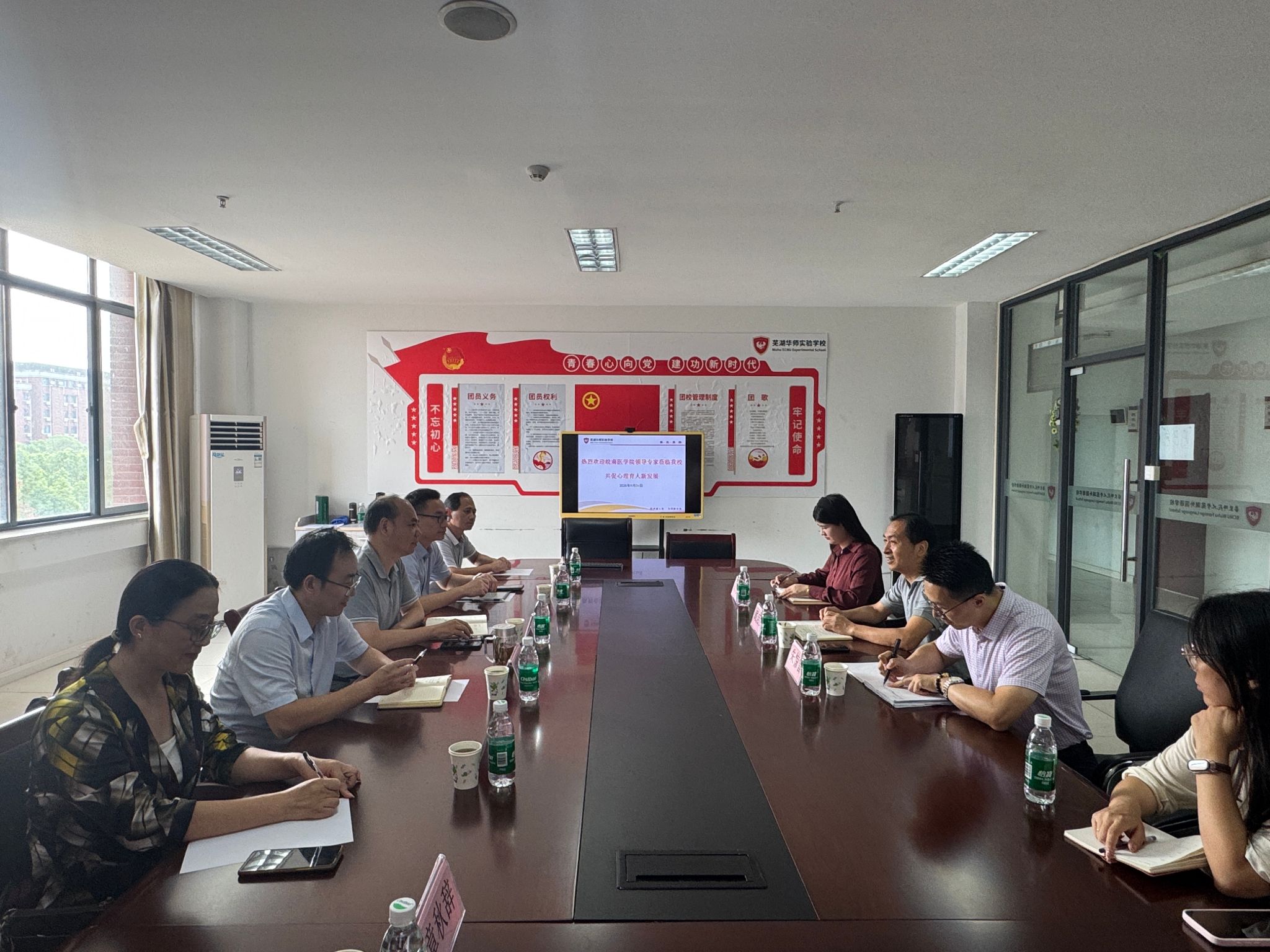 洽谈会上,戴启武副书记详细介绍了芜湖华师实验学校的办学历史、特色课程体系、师资力量及育人理念,强调了中小学心理健康在学校教育中的重要地位,并表达了与365英国上市网站官网合作的迫切愿望,期望通过高校的专业支持,提升学校心理健康教育的质量和水平。