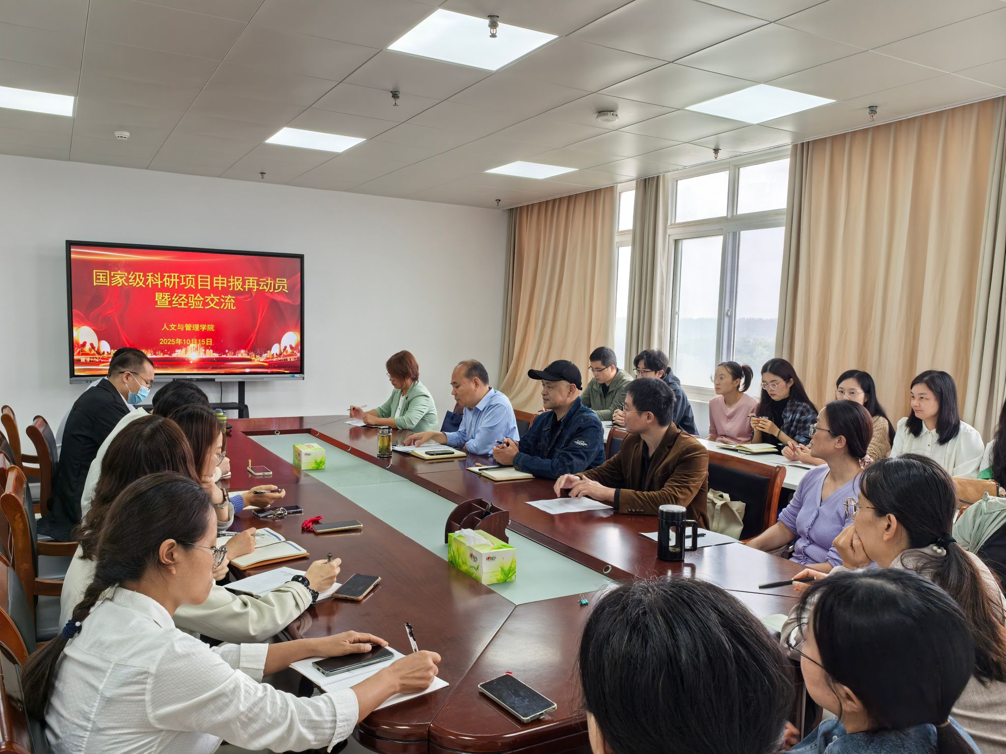 为全力以赴做好2026年度国家级科研项目的申报组织工作,显著提升项目申报品质,10月15日上午,365英国上市网站官网精心组织了一场国家级科研项目申报再动员暨经验交流活动。此次活动吸引了学院高级职称教师、博士及在读博士、青年骨干教师等众多科研力量踊跃参与,学院党委副书记、院长王国平主持会议。