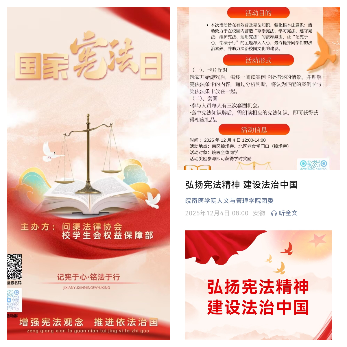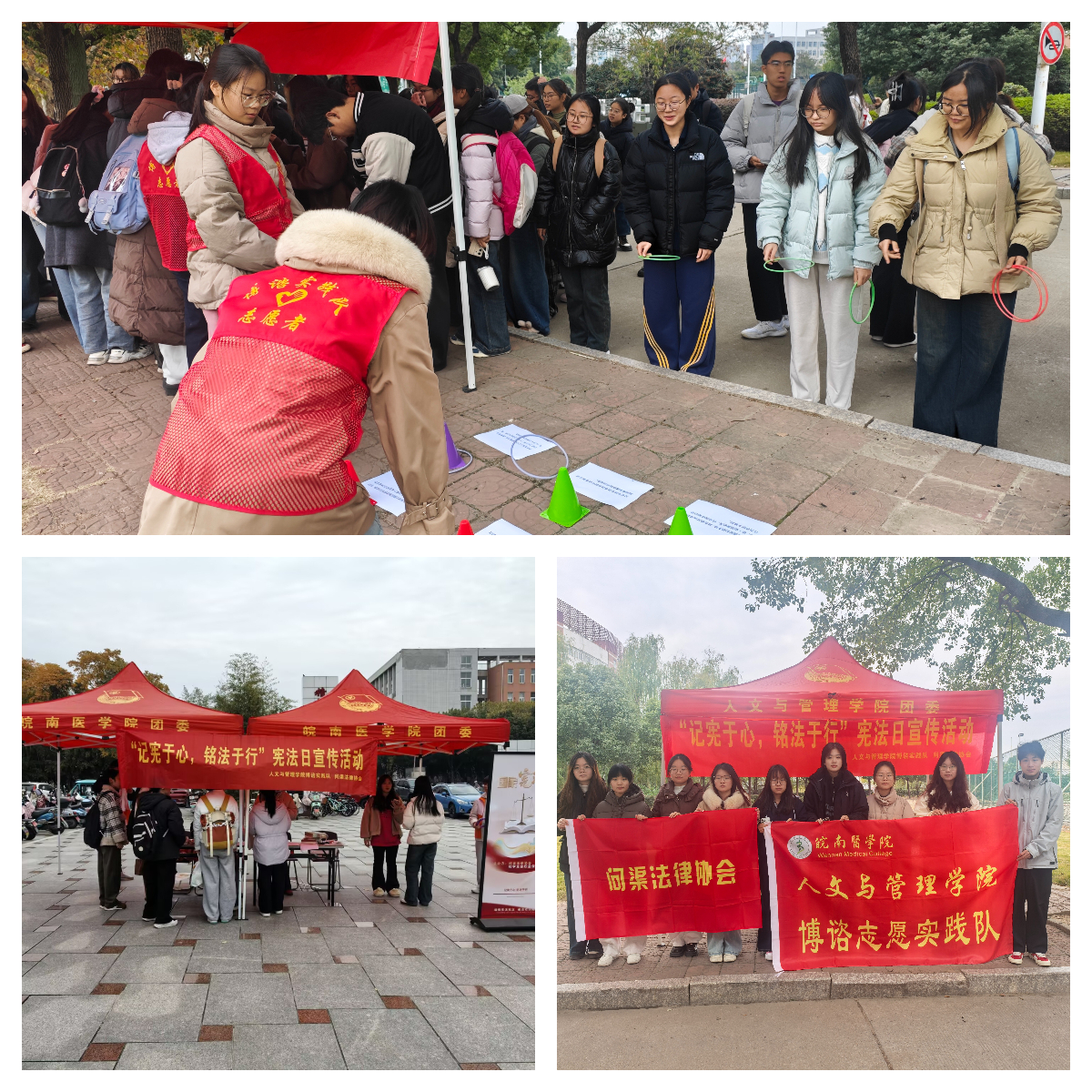 12月4日,问渠法律协会联合校学生会、365英国上市网站官网学生会共同举办“案例与法条配对”“宪法知识套圈”趣味活动,突破传统普法的单向灌输模式,激发同学们对宪法的学习兴趣,引导广大师生在亲身参与中直观理解宪法作为国家根本大法的地位、作用以及对公民基本权利与义务的规定,在校园内营造“尊崇宪法、学习宪法、遵守宪法、维护宪法、运用宪法”的浓厚氛围。